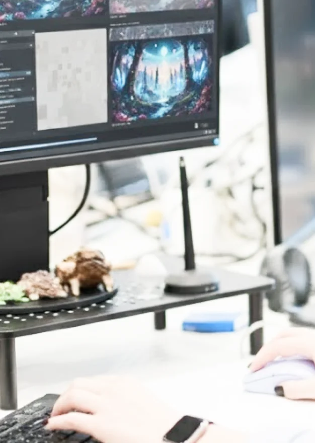 アート制作の土台を瞬時に作り出したり、膨大な数のバグを自動で発見・報告 したりします。これにより、アーティストは細部のブラッシュアップや コンセプトアートの創造に、プログラマーは新機能の開発やシステムの 最適化に、より多くの時間を割くことができます。